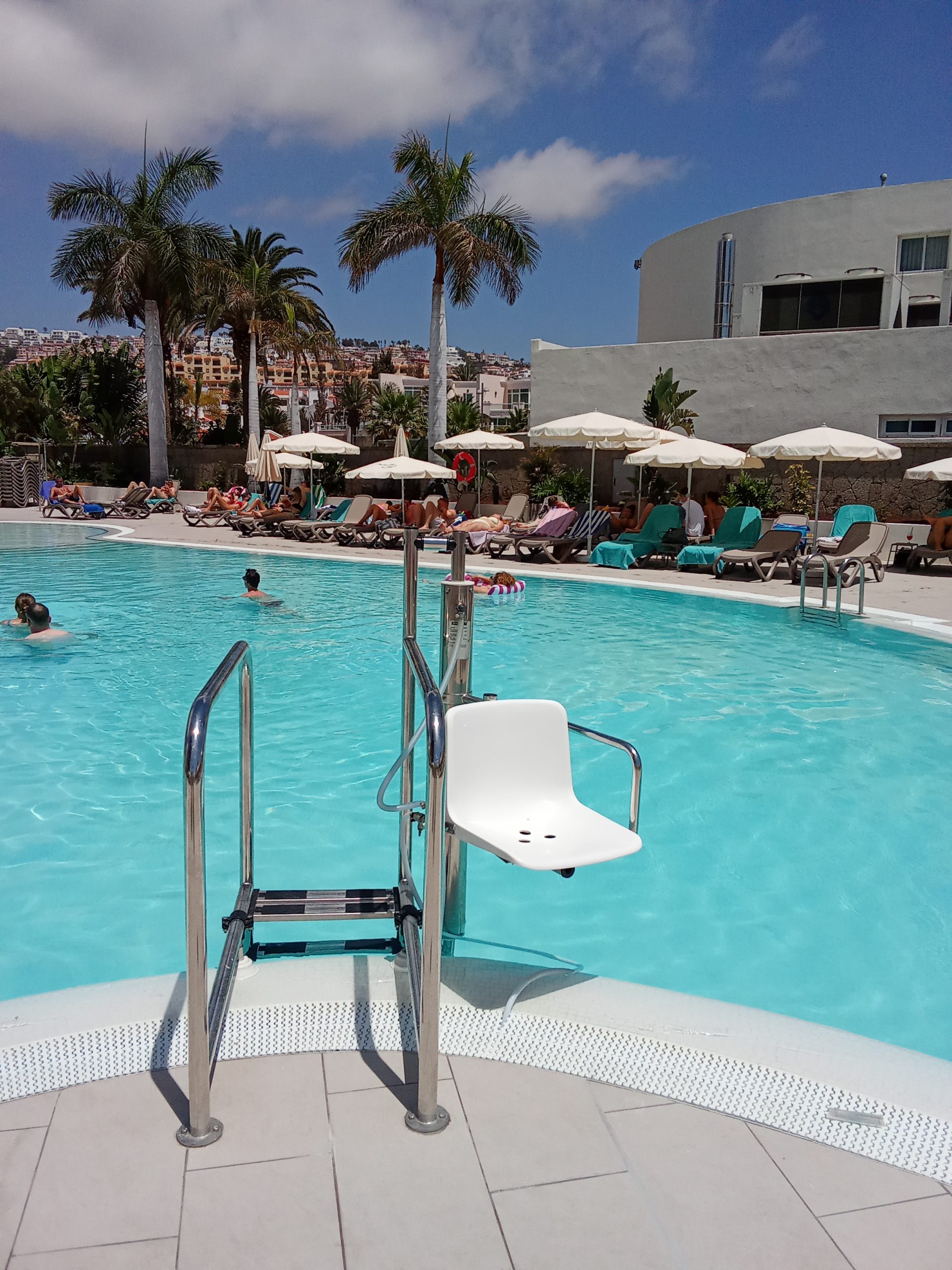 Ook in je hotelkamer is aan alles gedacht. De aangepaste kamers zijn ruim opgezet, zodat je makkelijk met een rolstoel kunt bewegen. De badkamer is comfortabel en veilig, met handgrepen en een inloopdouche. Zo kun je overal in het hotel onbezorgd genieten. Alle kamers hebben airconditioning, een balkon of terras om buiten te zitten, een koelkastje en een tv. Het voelt als een tweede thuis, maar dan met de zon van Tenerife op je gezicht.